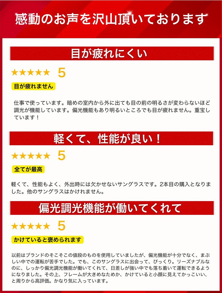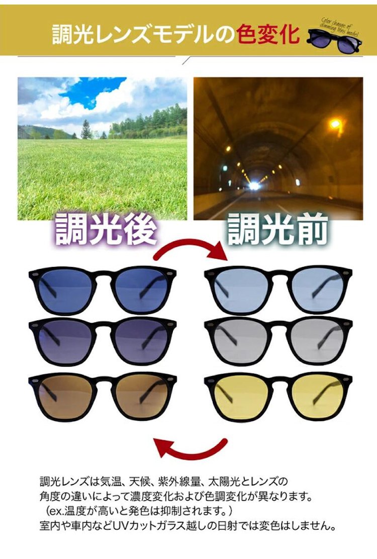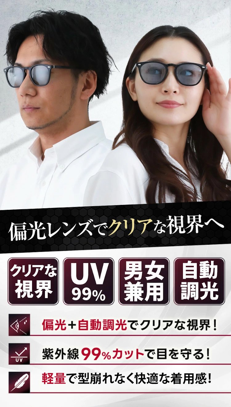 「男女兼用」調光偏光サングラス