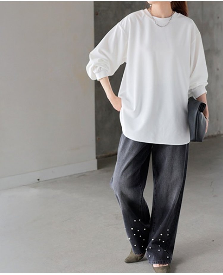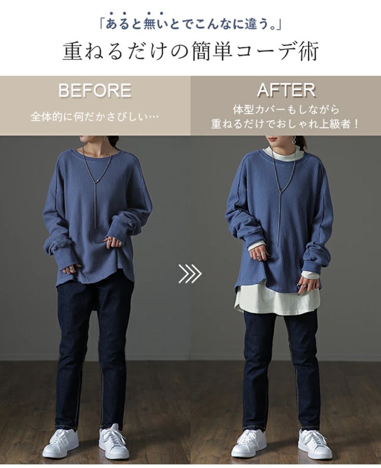 【レイヤードのマストアイテム】裏起毛カーブ裾長袖Tシャツ